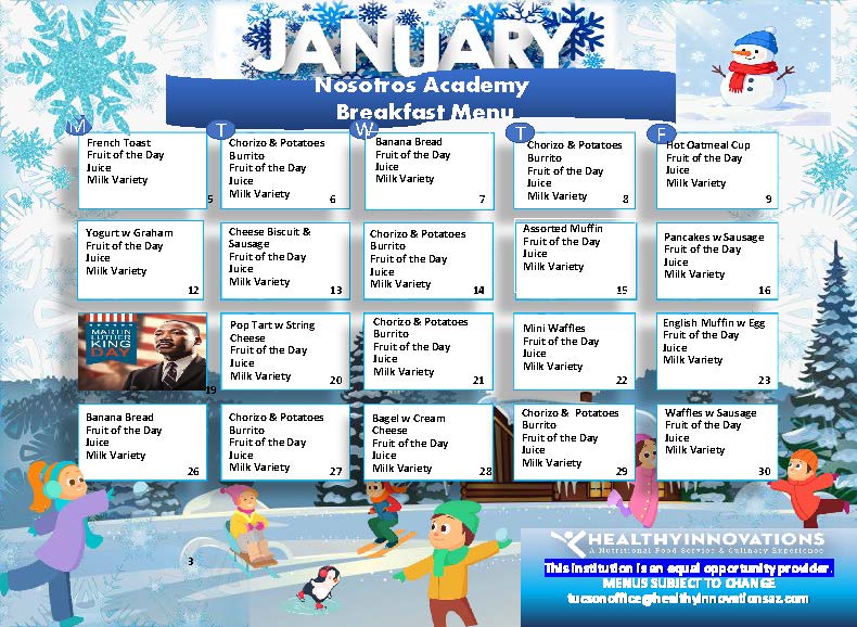 All school year long we provide free meals (breakfast and lunch) to all students enrolled at Nosotros Academy.
