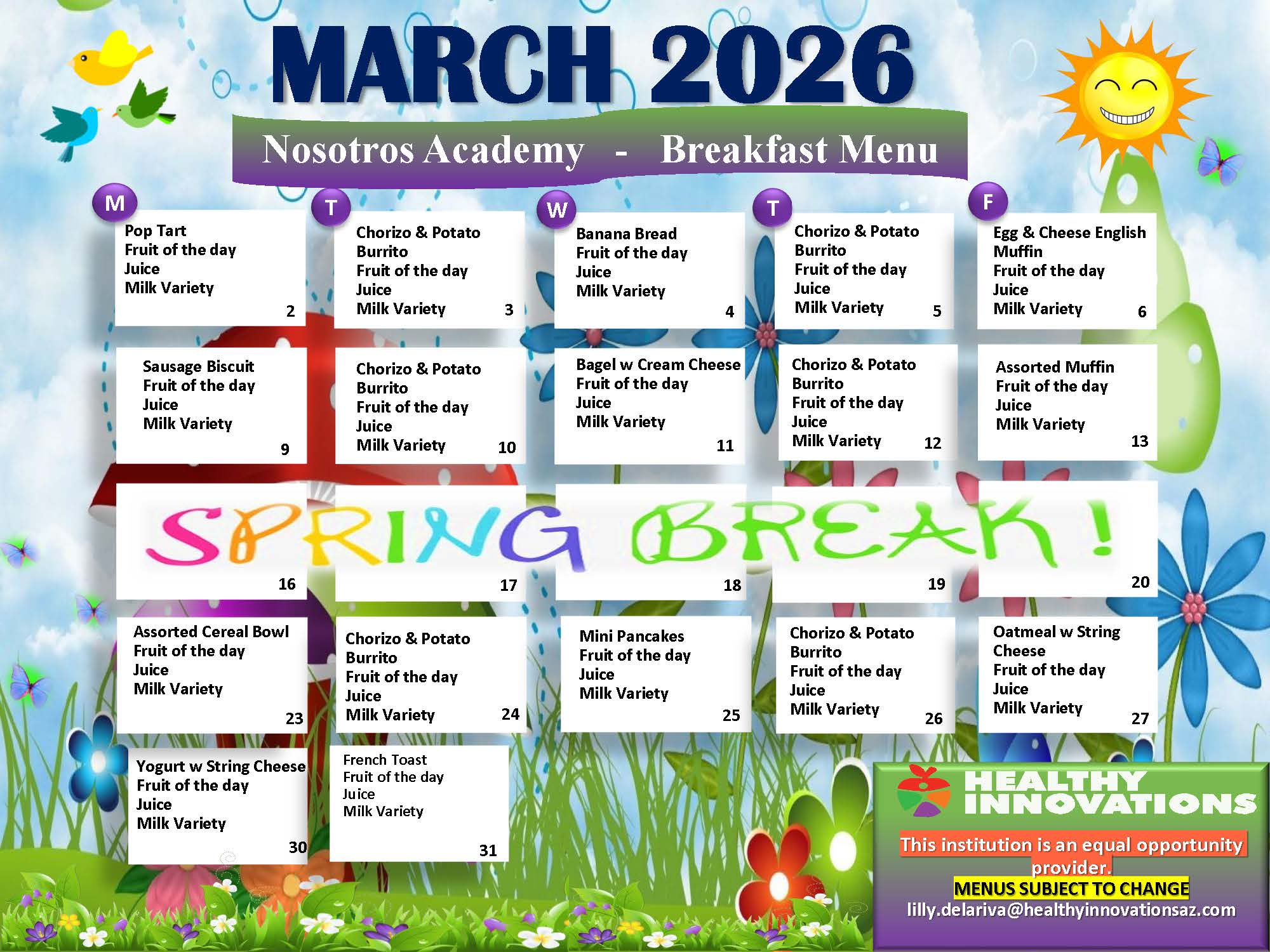Meals will be offered Monday-Friday (excluding holidays)